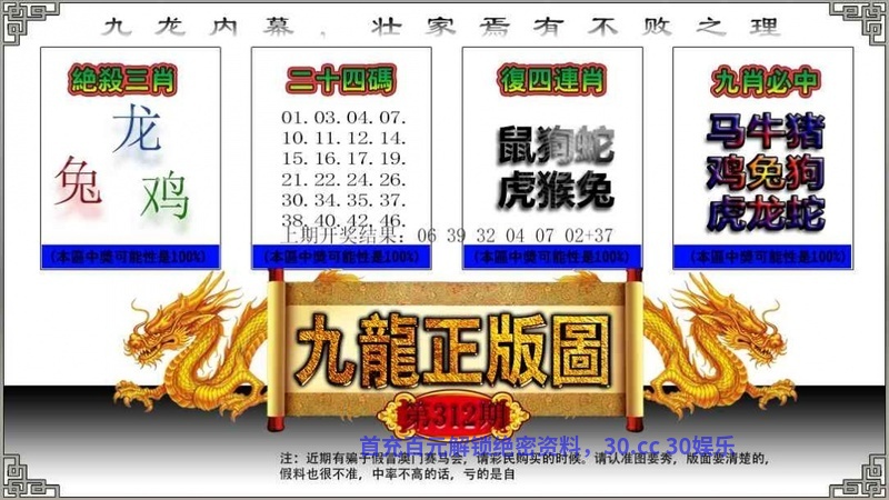 312期:二季中特〖秋夏〗开:龙14错